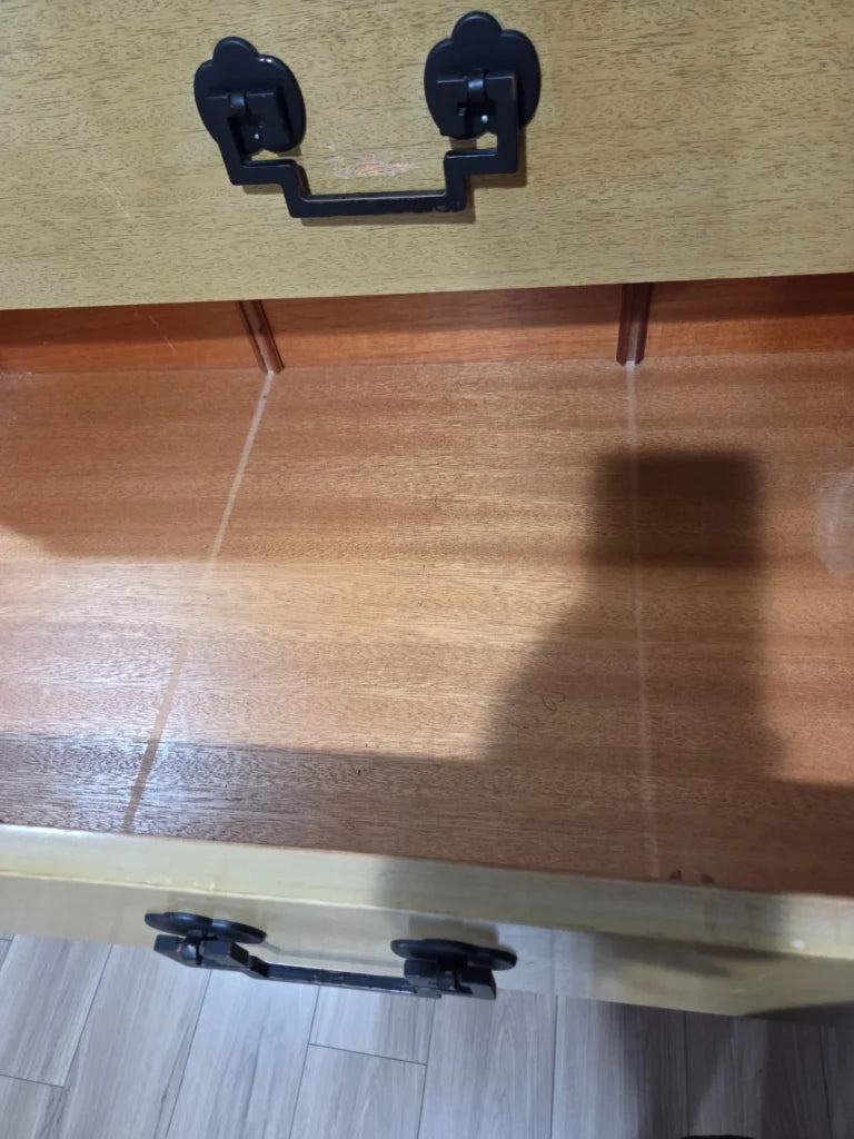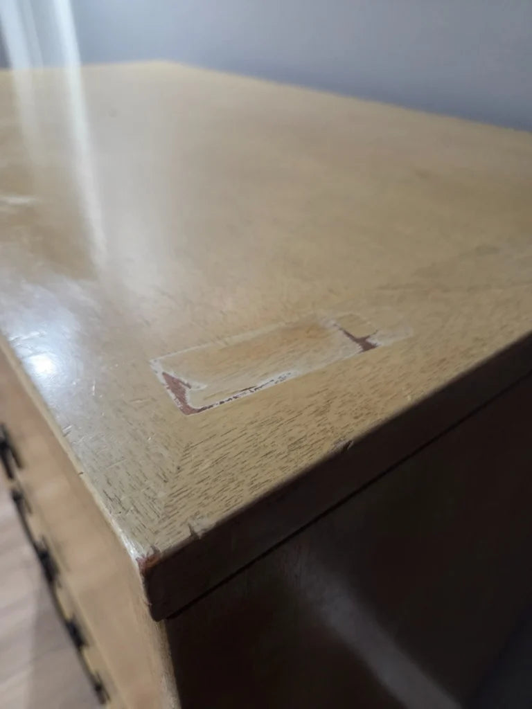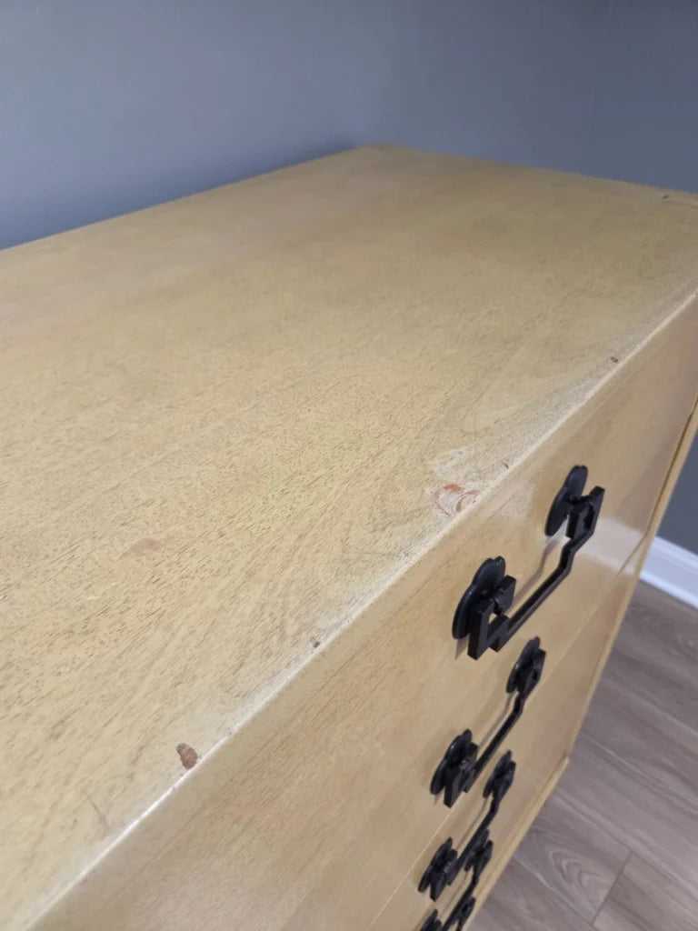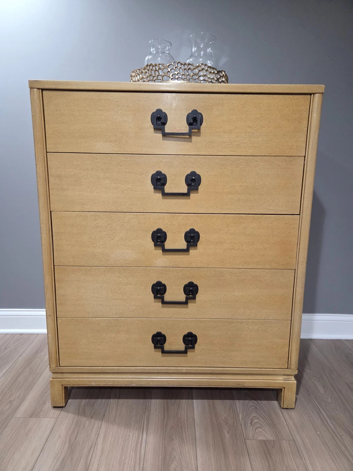 features five drawers for ample storage space, standing at a height of 45 inches. Manufactured in the 1950s, this vintage dresser exudes a