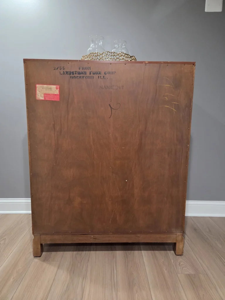 The 1950s Vintage Highboy Dresser by Landstrom Furniture is a charming and unique piece of antique furniture. With its retro design, this dresser