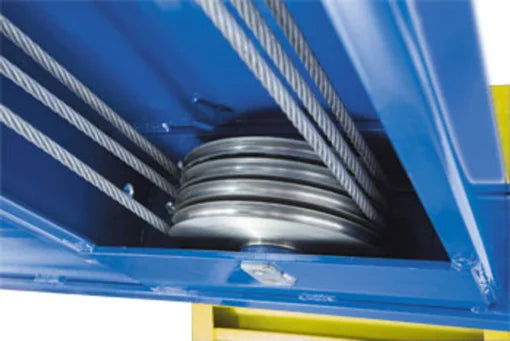 The HDS-18E four-post lift features four galvanized lifting cables that do an excellent job of providing abrasion resistance and preventing fatigue.
