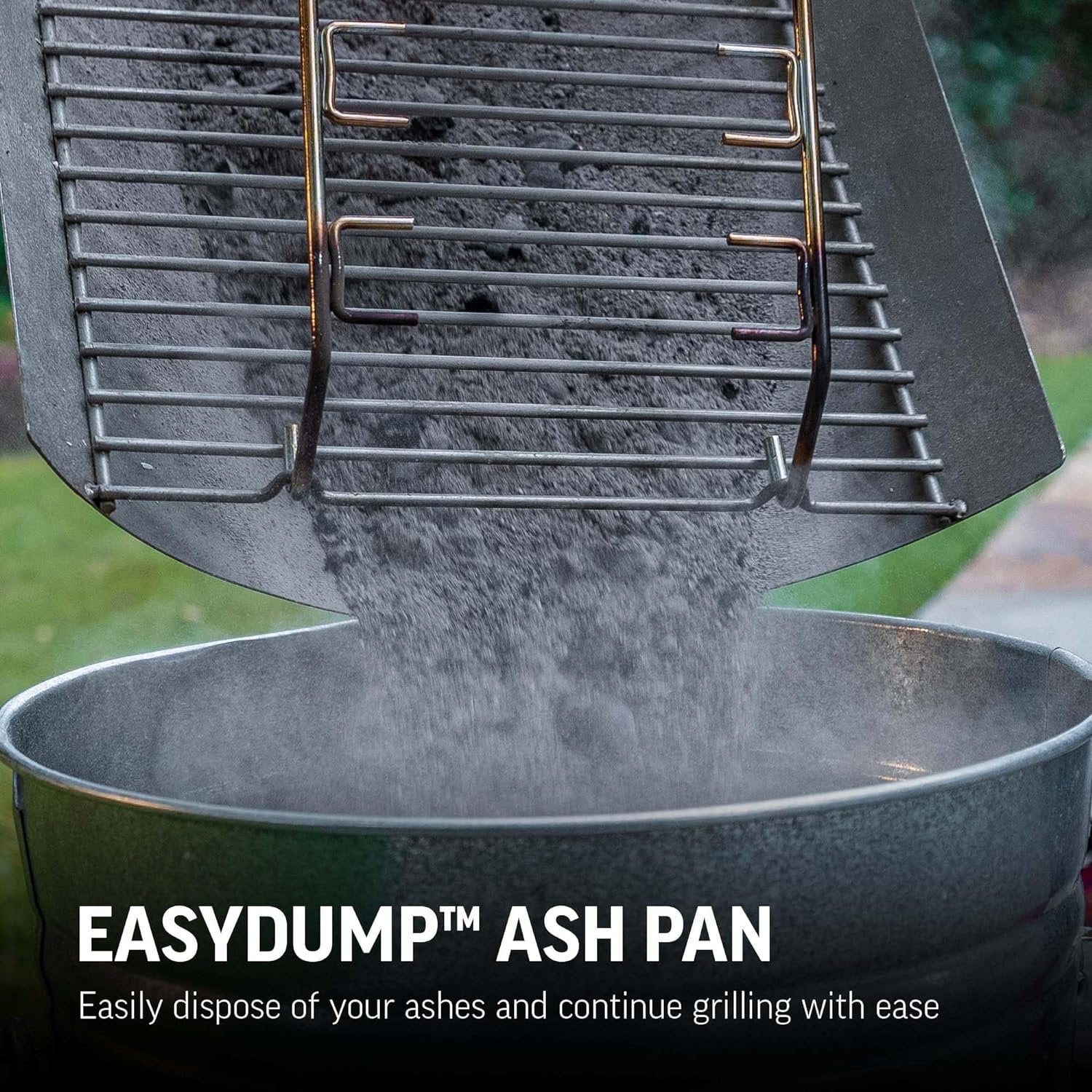 EasyDump Ash Pan to easily dispose of your ashes and continue grilling with ease