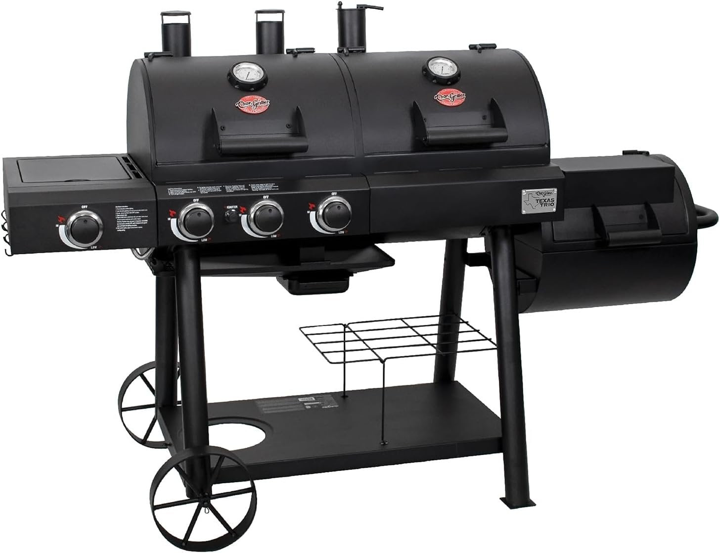 Whether you’re a fan of charcoal grilling or gas grilling, the Texas Trio Gas and Charcoal Grill has got you covered with both options in one convenient unit. With the gas grill side, you can quickly sear steaks or cook up burgers and hotdogs for a weeknight barbecue. When you’re ready to slow things down and savor the smoky flavor of charcoal grilling, simply fire up the charcoal side and let the grill work its magic with the help of the Side Firebox.