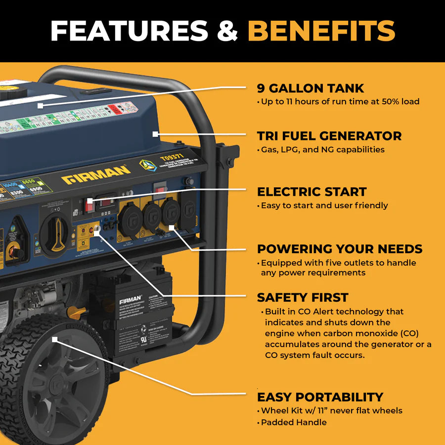 Running watts 9300W (GAS), 8300W (LPG). 6900W (NG)