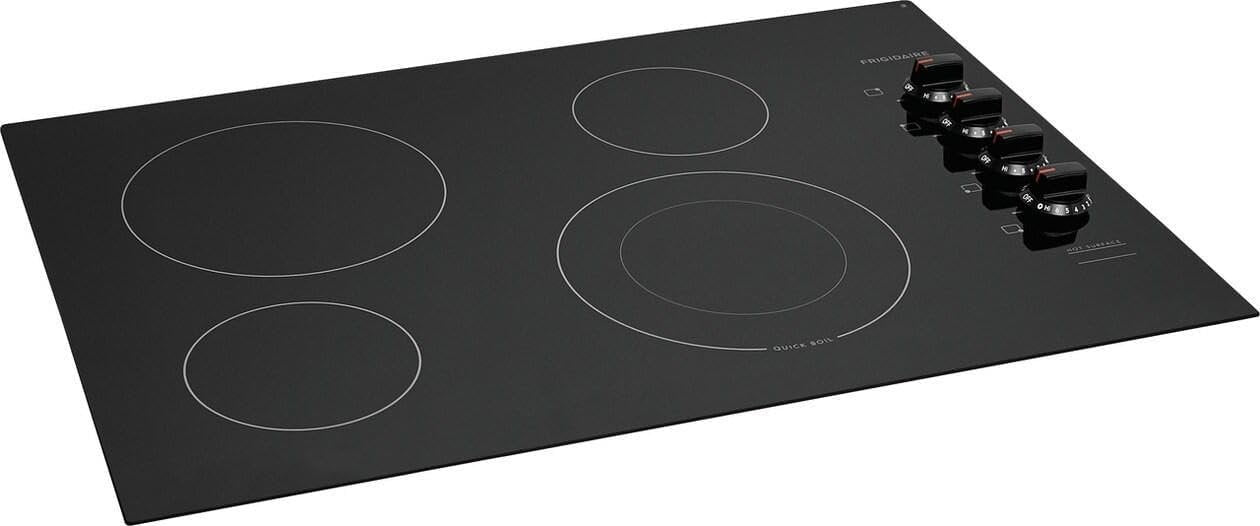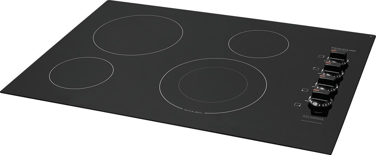 The Frigidaire 30 in. Electric Cooktop has two different element sizes, and alerts you when the cooktop is on and is too hot to touch. This frameless drop-in cooktop has easy-to-use controls that make it easy to select cooking temperatures and options. Quick Boil Element SpaceWise Expandable Element Frigidaire Fit Promise