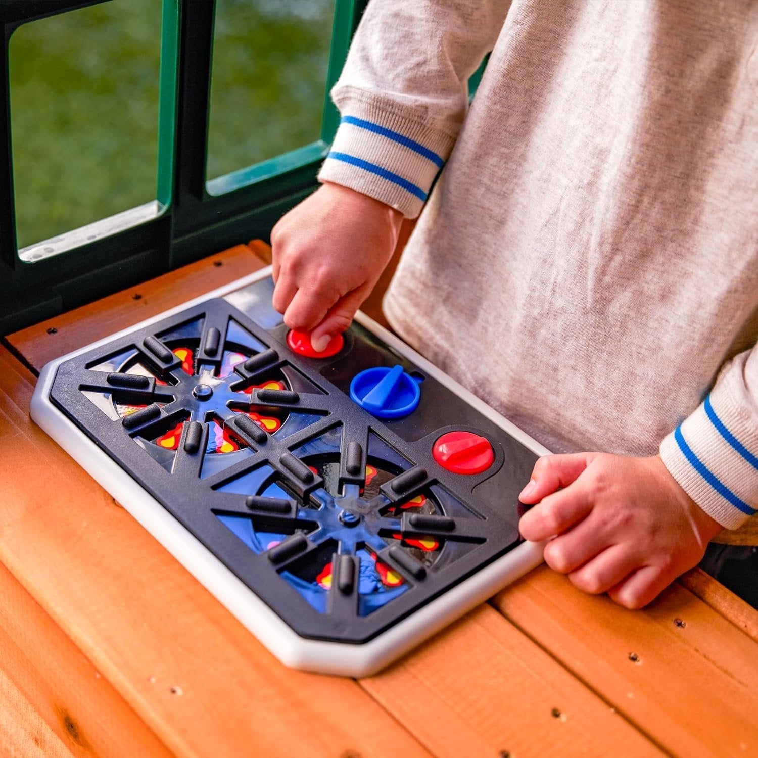 Kids’ playset or Eighth Wonder of the World? The Falcon Ridge Swing Set by KidKraft is just that awesome. So awesome, in fact, it’s capable of keeping up to 13 energetic kids busy and happy. For starters, Falcon Ridge features three amazing slides—two high-rail wave slides for racing side by side and one thrilling 12-foot Twist-n-Ride tube slide. The excitement continues with a multi-colored rock wall that leads to the spacious upper clubhouse (perfect for secret meetings). Downstairs, a deluxe play kitchen with stovetop, sink and accessories delights future chefs. Plus, there’s a double-sided chalkboard for writing out daily menus. A large café window and moveable bench are just right for serving snacks to your friends and family. And when the clock with moveable hands says it’s time to go, a quick dash to the belt swings or two-person glider starts a brand new adventure. The full two-level structure is like having a playhouse and swing set in one, right in the comfort of your own yard. Crafted of premium wood with a child-friendly stain, Falcon Ridge delights all with its shiplap roof, decorative gables and rounded arch windows. A true wonderland of fun without ever leaving home.