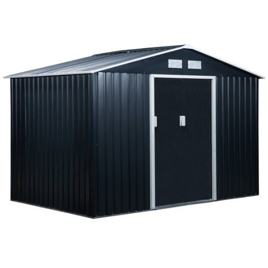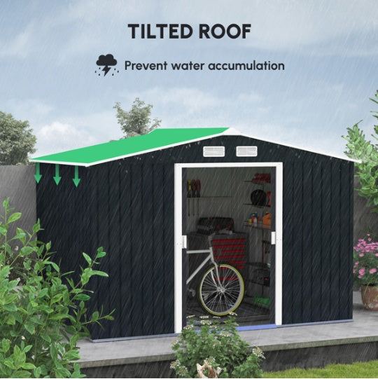 Keep your outdoor space organized with this spacious and weather-resistant garden storage shed. Built from durable galvanized steel, it is designed to protect your tools, lawn equipment, and pool supplies from the elements. The sloped roof prevents water buildup, while built-in vents provide proper airflow and natural light inside.