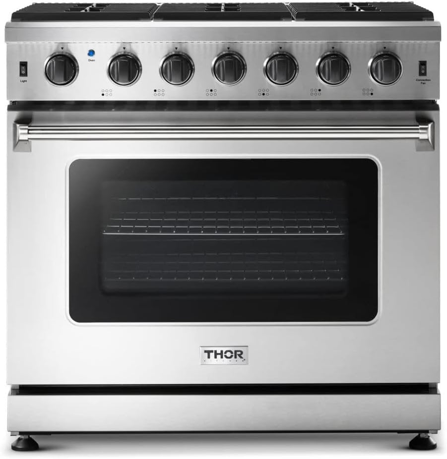 THOR Kitchen offers the power and performance of a premium professional appliance at a practical price. The THOR Kitchen 36 Inch Gas Range is a stainless steel machine designed with professional features and functionality. With powerful burners, continuous grates and a commercial convection fan, this range takes everything from prime rib to snickerdoodles to the next level.