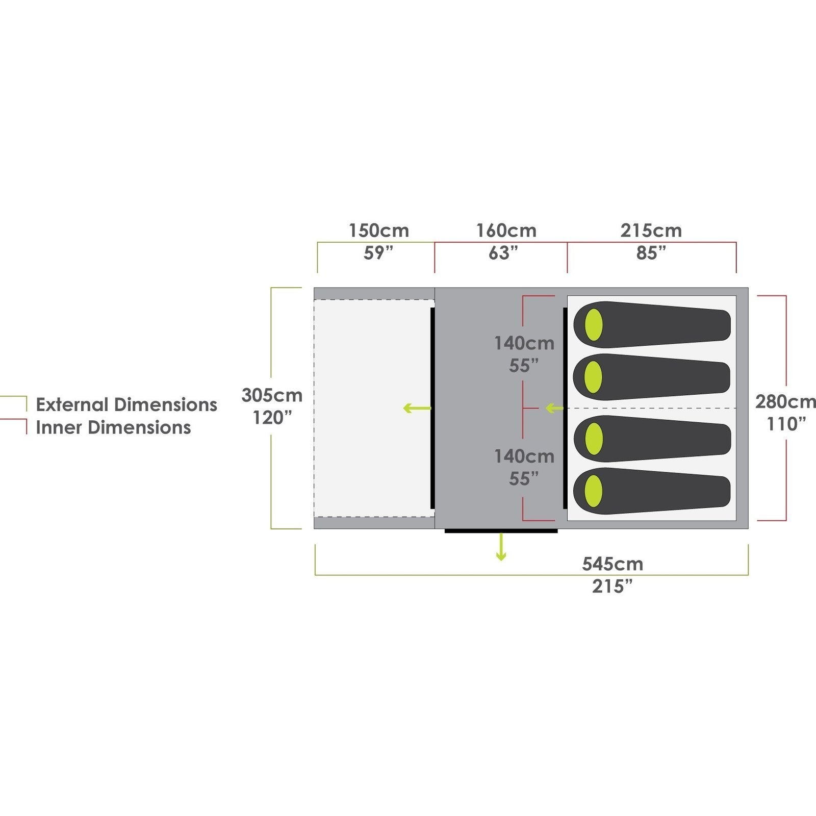 Aerodynamic tunnel design and inflatable airframe offers stability in strong winds, along with a 6,000 mm waterhead rating for torrential rain protection