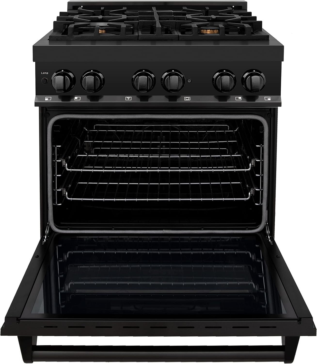 Luxury isn’t meant to be desired – it’s meant to be attainable. The ZLINE 30 in. 4.0 cu. ft. Legacy Dual Fuel Range with Gas Cooktop and Electric Convection Oven in Black Stainless Steel with 4 Brass Burners (RAB-BR-30) pairs a powerful gas cooktop with 4 Italian-crafted brass burners and an electric convection oven with a Landscape oven door window design. With innovative features designed to enhance your kitchen’s capability, ZLINE Legacy Dual Fuel Ranges provide a professional culinary experience by pairing unmatched performance with timeless style.